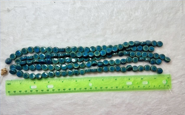 Blue Handmade Porcelain Beads, Antique Glazed Porcelain, Flat Round, 12x7 mm