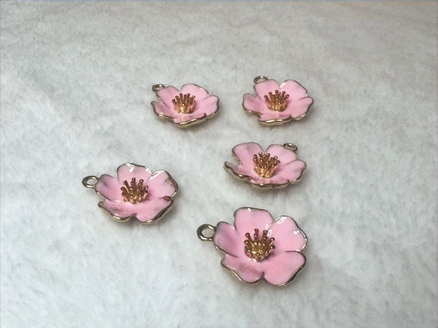 Hibiscus Flower, Alloy Enamel Pendants, Light Gold, Pink